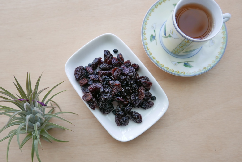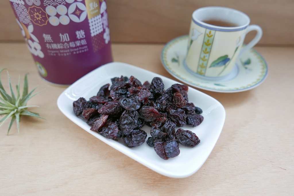 為切半蔓越莓乾、葡萄乾、無加糖藍莓乾,