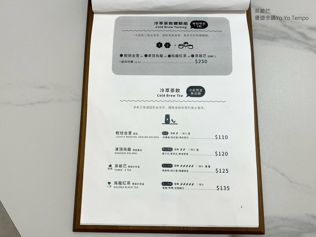分享茶畝芢禮盒裡面有一張兌換卷可以來這家店體驗冷泡茶,有輕焙金萱、凍頂烏龍、烏龍紅茶、茶畝芢/精選茶款,總共四款茶飲。