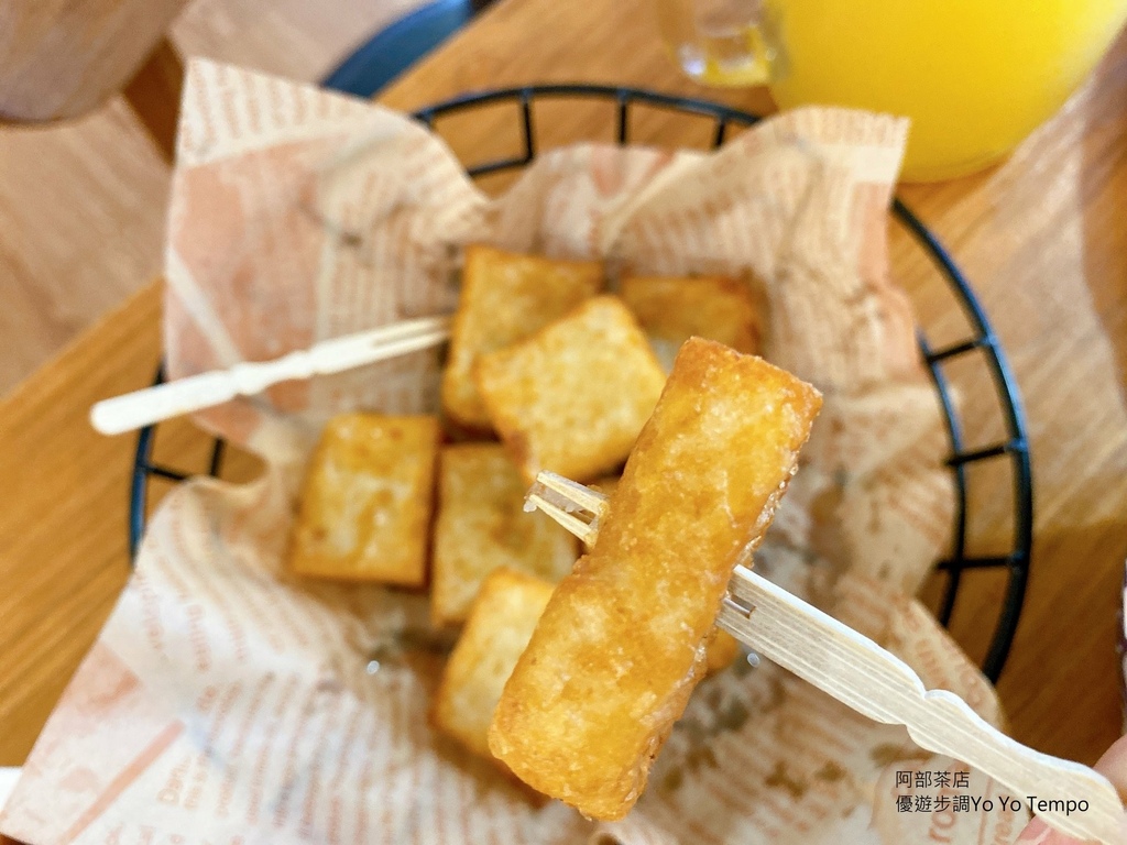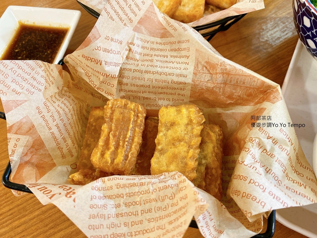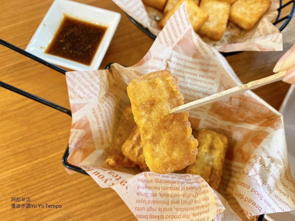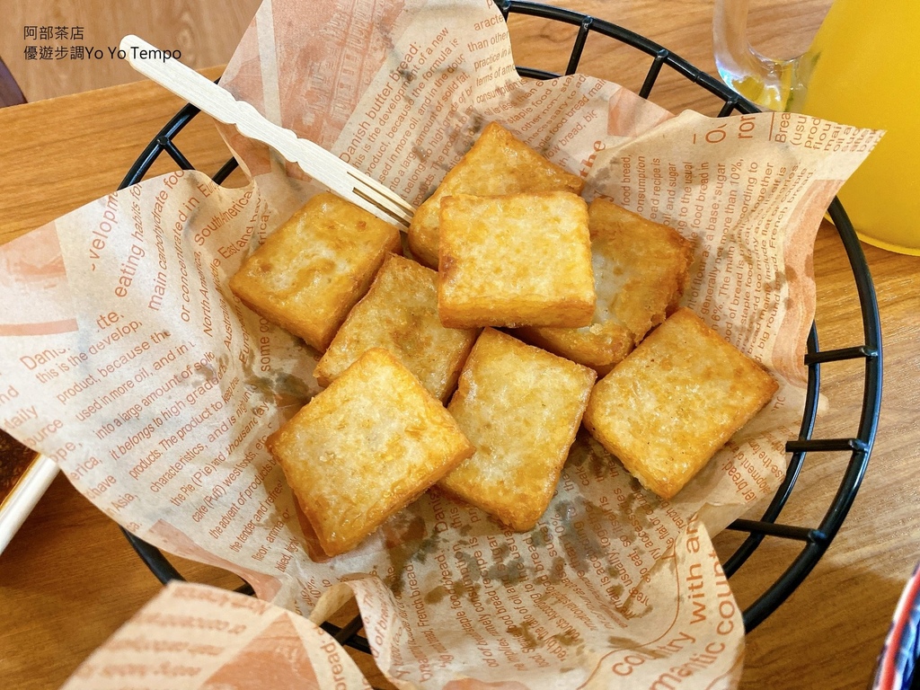 傳統甜點新詮釋!阿部茶店的炸年糕外酥內Q,口感層次極為豐富,外層是金黃酥皮包裹著Q黏年糕體,單吃不膩,是下午茶點心的絕佳搭配,甜點控必收!
